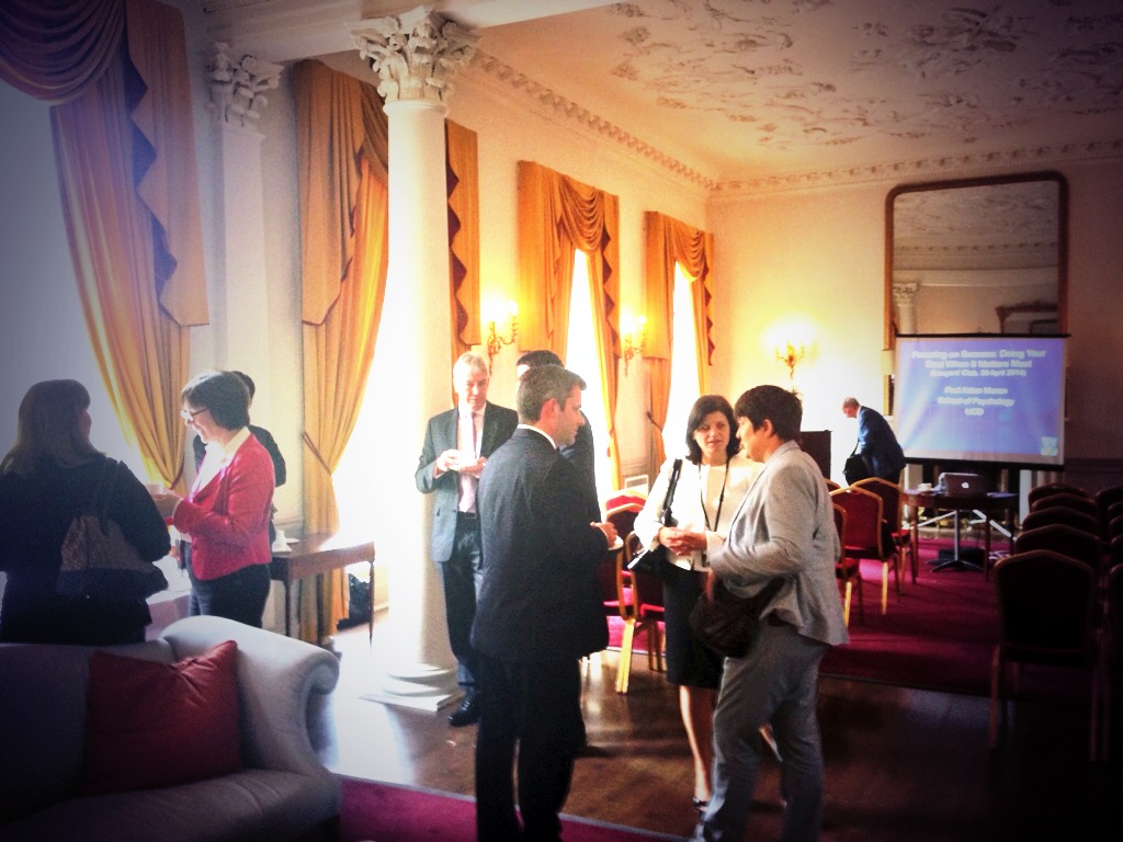- “In the stunning venue looking out onto St. Stephen’s green on a sunny Spring afternoon in Dublin, Professor Aidan Moran had his audience engaged in a very interesting talk on using psychology to achieve success. Using real life examples from the most successful players in the sporting world, we were taught in a very engaging and easy-to-digest presentation, why our mind works the way it does when faced with a task and how to best use some very effective tools to improve focus and concentration on whatever the job in hand. A very informative discussion hosted in a fabulous setting. Well done Colin for bringing an expert like Professor Moran to speak to us in Dublin. If you can convince Professor Moran to speak to your Network in London in the future, I would travel over to hear him speak again.”