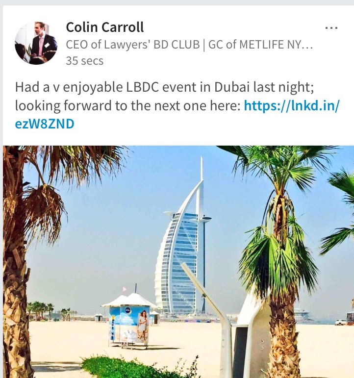 You may be interested to see some photos from our exclusive Dubai networking event for the LBDC | Lawyers’ Business Development Club |.