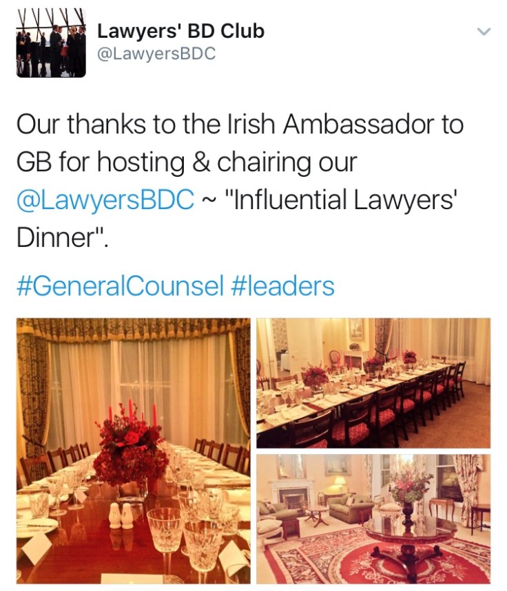 A big thank you to Daniel Mulhall, the Irish Ambassador to Great Britain for being our guest speaker at our Influential Lawyers’ Dinner for the Lawyers’ Business Development CLUB.
