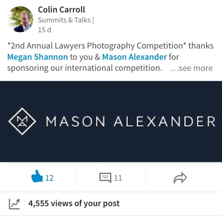 I am delighted to announce that Mason Alexander has come on board as one of our sponsors for our *2nd Annual Lawyers Photography Competition*.