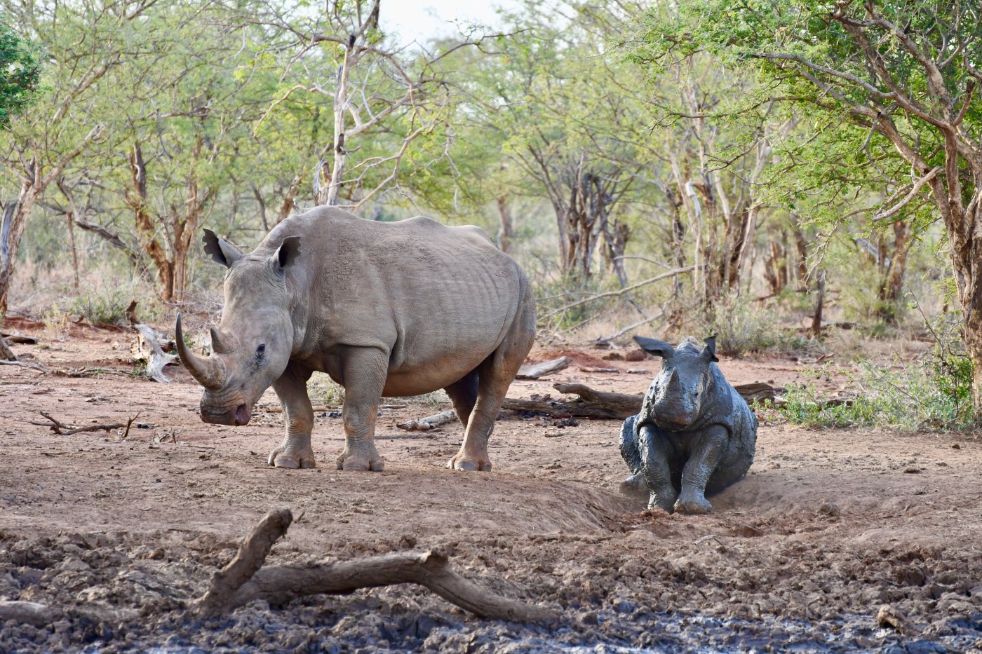 I took this photo on safari last year in South Africa. Capturing this moment was really special as a mother rhino and baby rhino came to bath in a mudbath.