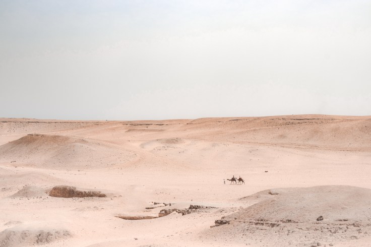 Camel Riders making their way through the Sahara desert