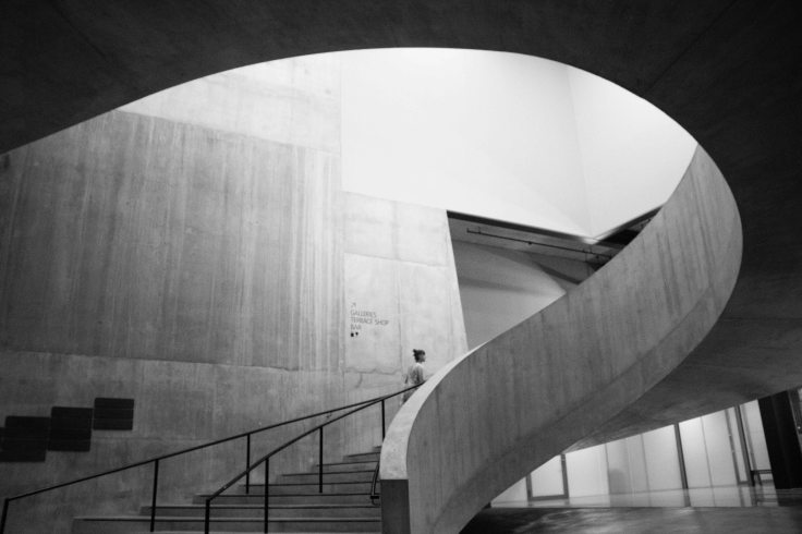 A black & white shot of the stairwell in the Tate Modern, London
